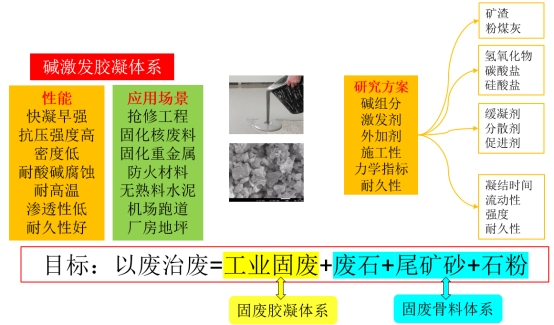 研究内容3:固废基无机聚合物胶凝体系研究。以铁尾矿砂、铁尾矿石粉等固废为骨料,开发碱激发特种建材,研发适用于碱激发的塑化剂、缓凝剂,发挥碱激发的早强、高强、耐久性优良特性。为碱激发大范围工程应用提供理论支撑。